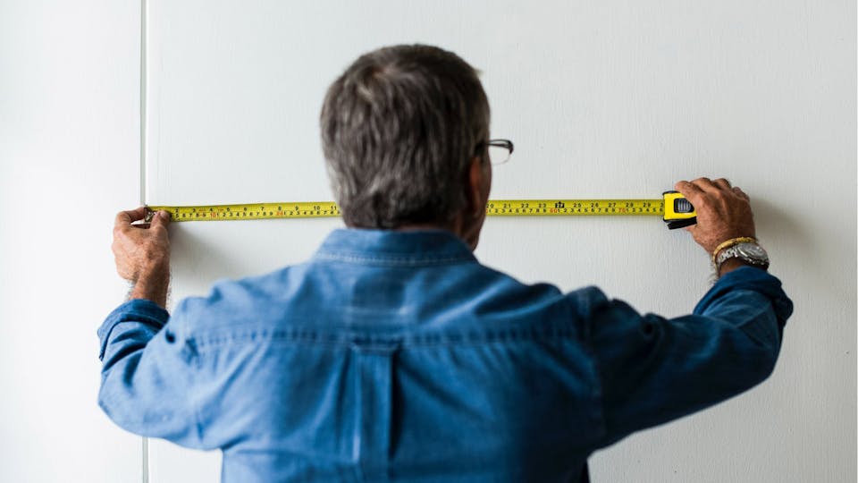 Beginnen Sie damit, festzulegen, wo Sie die Tür montieren möchten. Die Standardtüröffnung ist 90 cm breit (ohne Türrahmen) und 206 bis 208 cm hoch. Die Tür sollte breiter sein als die Türöffnung. Der optimale Bereich beträgt 10 cm – damit können Sie die untere Führung platzieren und die Türöffnung vollständig abdecken.