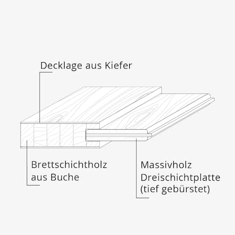 Bei Reno legen wir Wert auf schöne Holzmuster – die Wahl der Kiefer in unseren Projekten ist nicht zufällig! Edle, weiche Linien, starke Kontraste und die unter der Hand zu spürende Struktur des Zirbenholzes sind für uns einfach magisch. Genau aus diesem Grund haben wir uns entschieden, das Holz zu bürsten, was sein einzigartiges Muster betont. Bei Reno kombinieren wir gründlich getrocknete und speziell ausgewählte Kiefernbretter mit einer meisterhaften Handwerkswerkstatt, um ein makelloses Bürstergebnis zu erzielen.