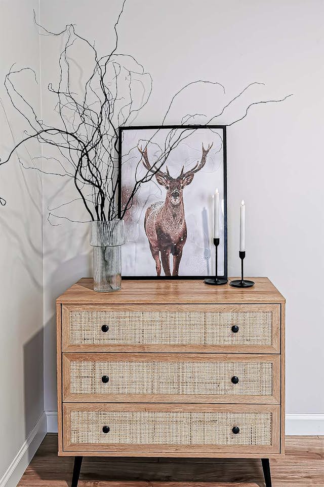 Diese Kombination sorgt für ein wirklich organisches Aussehen, perfekt für Innenräume mit natürlichem Charakter. Die Kombination aus Rattan und Holz verleiht dem Raum Gemütlichkeit und Wärme. Perfekt für moderne und klassische Räume.