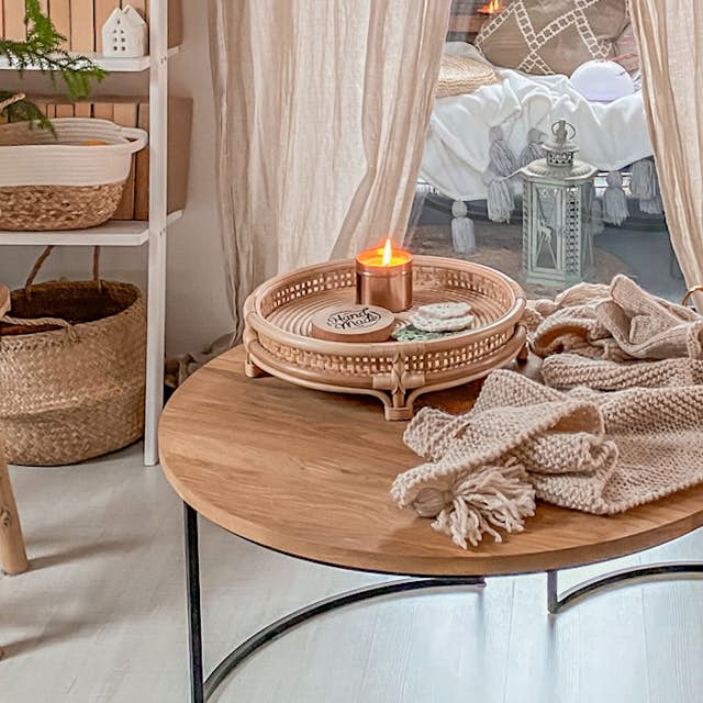Die Kombination von Rattan mit natürlichen Stoffen ist eine tolle Idee, um dem Interieur einen schlichten, wohnlichen Charme zu verleihen. Welche Stoffe sollten hierfür verwendet werden? Wir raten von jeglichen künstlichen Materialien ab, wählen Sie stattdessen Leinen, Baumwolle oder Wolle, die perfekt mit Rattan harmonieren.