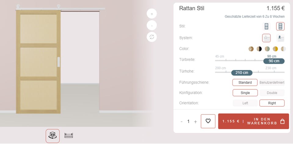 1. Wählen Sie zunächst das Türmodell, das Sie interessiert, in unserem Online-Shop aus, z. B. Rattan. Sie werden automatisch auf die Konfigurator-Seite weitergeleitet.