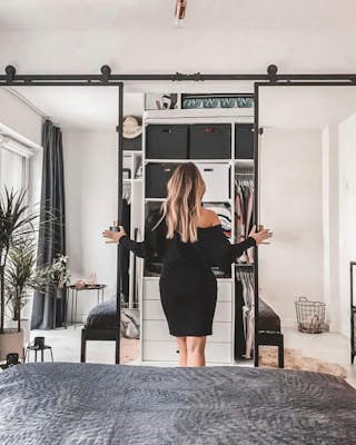 Denken Sie auch daran, dass die Türen, die mit Hilfe eines Schiebesystems an der angrenzenden Wand entlanggleiten, 1,5 bis 2,5 cm über diese hinausragen, sodass Sie Ihre Traumposter problemlos daran aufhängen können.