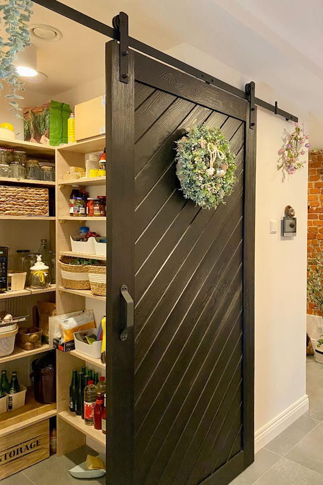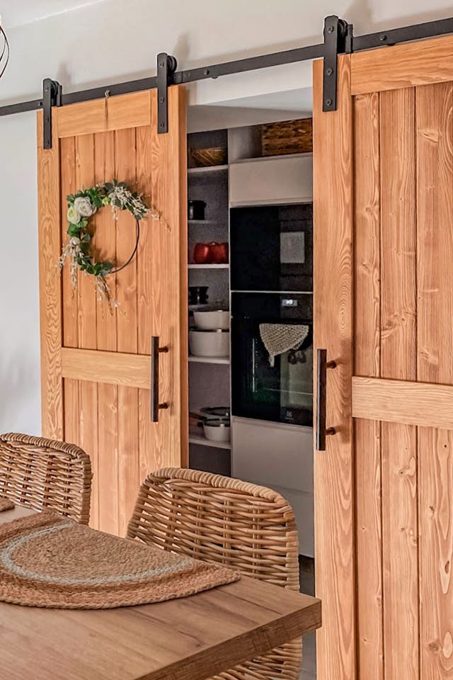 Wir haben keinen Zweifel daran, dass Speisekammer-Schiebetüren im besten Sinne des Wortes zumindest eine originelle Wahl ist. Diese Lösung ist nicht sehr offensichtlich und überrascht daher alle Besucher Ihres Hauses. Wenn Sie Einzigartigkeit schätzen, werden Schiebetüren ein stilvolles Element hinzufügen. Egal, ob Sie nach einem modernen Look mit einer minimalistischen Führungsschiene oder etwas rustikaler mit freiliegenden Führungsschienen und Rollen suchen, eine Schiebetür verleiht jedem Raum Charakter.