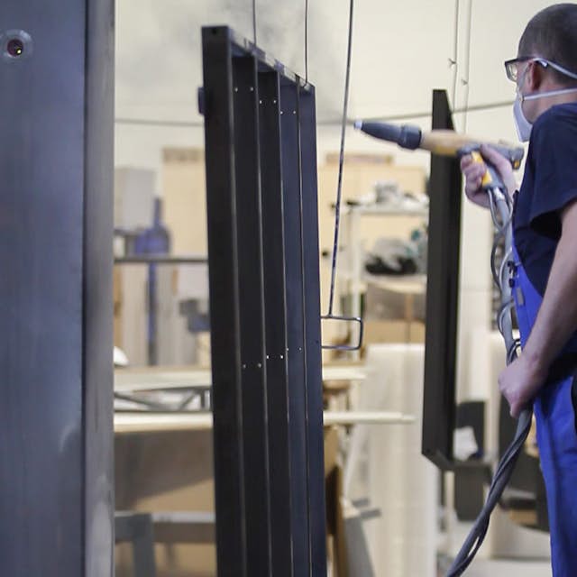 Unsere Stahltüren sind pulverbeschichtet. Es ist die ökologischste und umweltschonendste Methode, weshalb wir uns ausnahmslos dafür entscheiden. Darüber hinaus können wir mit der Pulverbeschichtung alle, auch die kleinsten Lücken erreichen und den Stahl schön hervorheben, glatt und bemerkenswert machen.