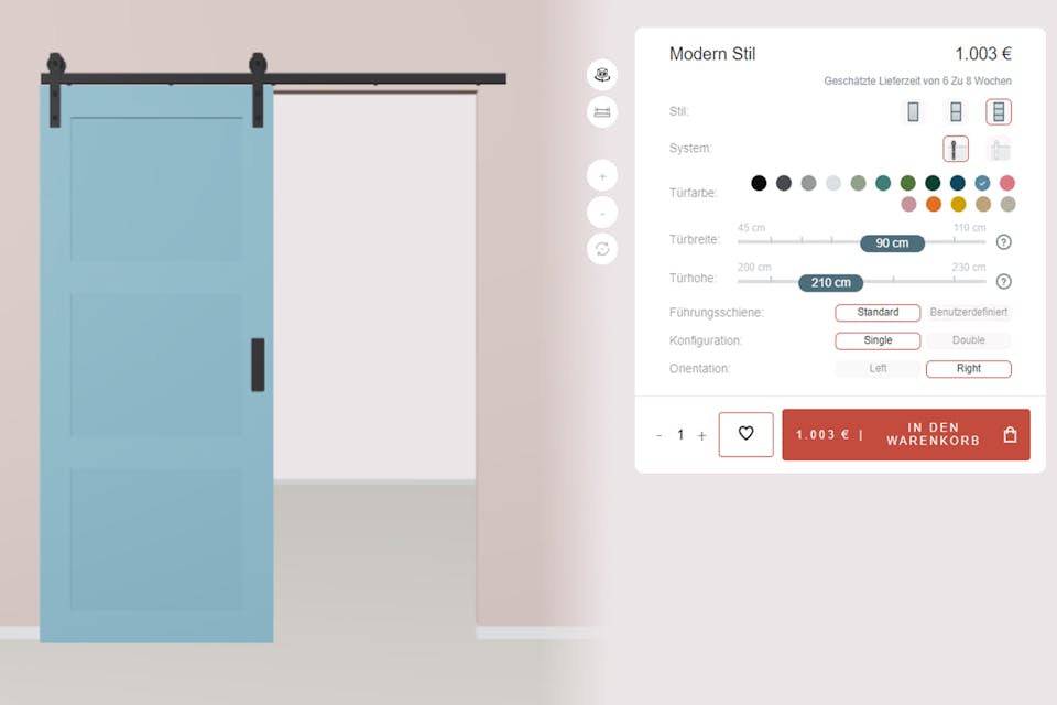 Sie finden den Konfigurator für Produkte aus den Kategorien Minimalist, Modern und Rattan. Bald werden wir seine Fähigkeiten auf alle unsere Produkte ausdehnen. Auf diese Weise können Sie die gesamte Palette der Reno-Türen sehen.