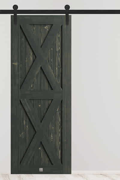 Die Türen aus natürlichem Massivholz ziehen alle Blicke auf sich. Diese Schiebetüren öffnen sich zur Scheune und zum Raum, der derzeit renoviert wird. Die auf dem schwarzen Smart-Schiebesystem montierten Türen passen perfekt zur Atmosphäre dieses Landhauses.