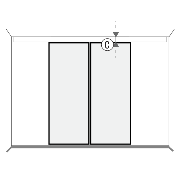 Bei Türen mit Deckenmontage ist das Türblatt aufgrund der Befestigung der Führungsschiene an der Decke etwas niedriger als die Höhe der Türöffnung. Achten Sie auf den verfügbaren Platz unter der Decke, der für eine ordnungsgemäße Installation benötigt wird.