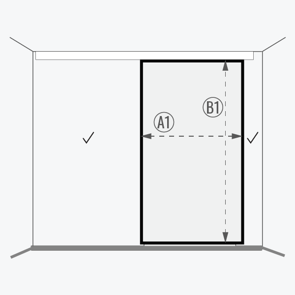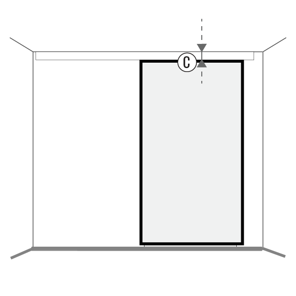 Bei Türen mit Deckenmontage ist das Türblatt aufgrund der Befestigung der Führungsschiene an der Decke etwas niedriger als die Höhe der Türöffnung. Achten Sie auf den verfügbaren Platz unter der Decke, der für eine ordnungsgemäße Installation benötigt wird.
