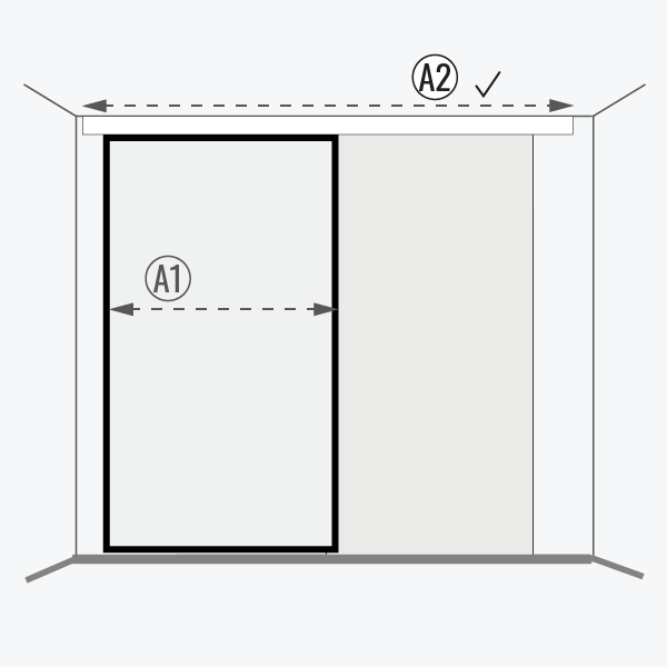 Die Länge der Führungsschiene richtet sich nach der Breite der Türblätter. Die Standardlänge der Führungsschiene ist so gewählt, dass die vollständige Öffnung der Tür und die korrekte Montage der Seitenstopper gewährleistet sind. Wenn Sie eine nicht standardmäßige Größe benötigen kontaktieren Sie uns.