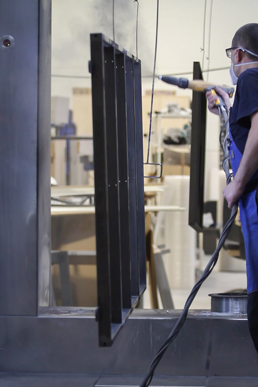 Unsere Stahltüren sind pulverbeschichtet. Es ist die ökologischste und umweltschonendste Methode, weshalb wir uns ausnahmslos dafür entscheiden. Darüber hinaus können wir mit der Pulverbeschichtung alle, auch die kleinsten Lücken erreichen und den Stahl schön hervorheben, glatt und bemerkenswert machen.