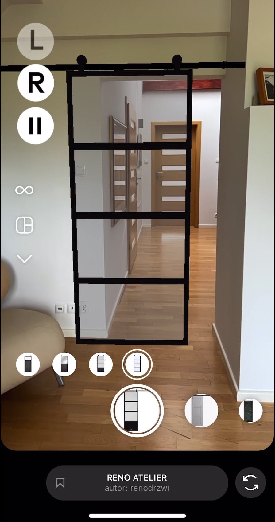 Mit unseren AR-Filtern können Sie sehen, wie Reno-Schiebetüren in Ihrem Zuhause aussehen werden. Probieren Sie sie im richtigen Maßstab im Eingangsbereich von Küche, Wohnzimmer, Schlafzimmer oder Ankleidezimmer aus. Im Folgenden zeigen wir Ihnen, wo Sie Filter in unseren sozialen Medien finden können, und wir sagen Ihnen, was Sie tun müssen, um den richtigen Effekt zu erzielen. Sie werden auch sehen, wie die AR-Visualisierung und das dekorierte Interieur aussehen (ein kleiner Hinweis: ja, es ist spektakulär!).