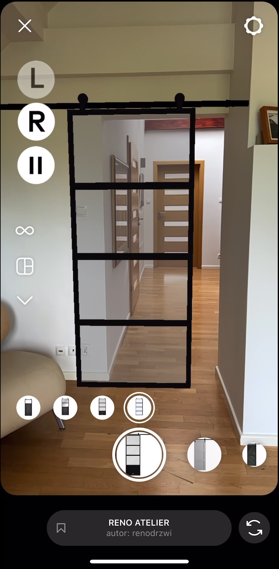Mit unseren AR-Filtern können Sie sehen, wie Reno-Schiebetüren in Ihrem Zuhause aussehen werden. Probieren Sie sie im richtigen Maßstab im Eingangsbereich von Küche, Wohnzimmer, Schlafzimmer oder Ankleidezimmer aus. Im Folgenden zeigen wir Ihnen, wo Sie Filter in unseren sozialen Medien finden können, und wir sagen Ihnen, was Sie tun müssen, um den richtigen Effekt zu erzielen. Sie werden auch sehen, wie die AR-Visualisierung und das dekorierte Interieur aussehen (ein kleiner Hinweis: ja, es ist spektakulär!).