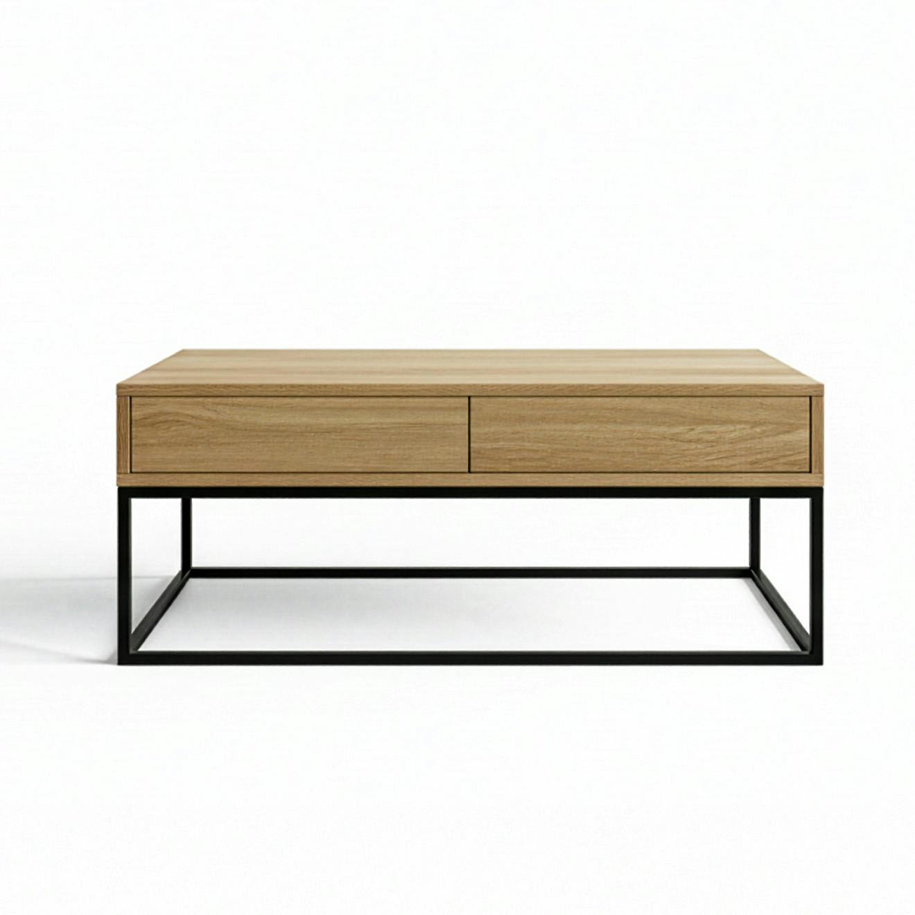 Der Couchtisch im Modo-Stil ist ein vollendetes Beispiel für moderne Handwerkskunst, bei dem die Strenge der industriellen Form harmonisch mit der Wärme der Natur harmoniert. Der einzigartige Charakter des Möbels wird durch die sanft gebürstete Tischplatte aus massiver Eiche definiert, die die natürliche Holztextur und die einzigartige Maserung zur Geltung bringt.