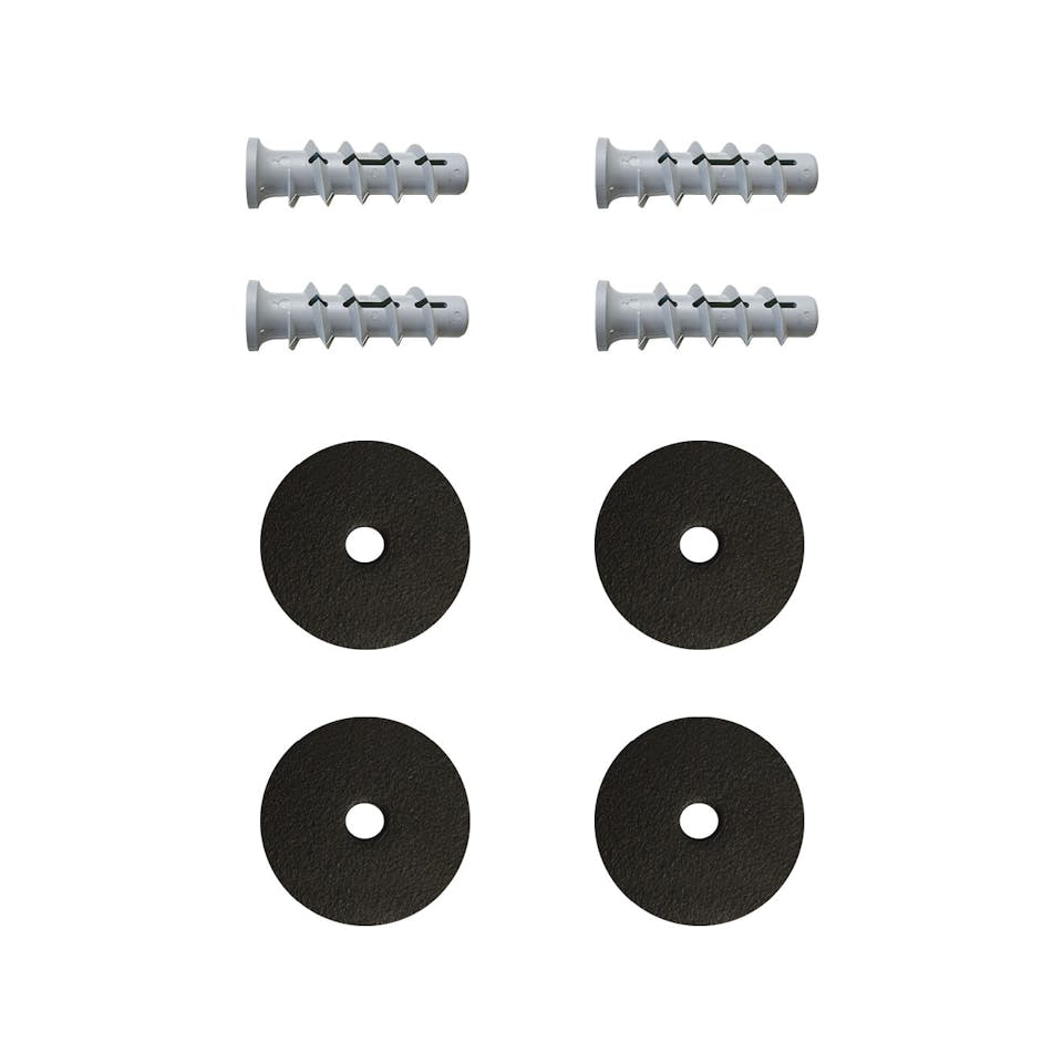 Die Verstärkung soll vor Verformungen schützen, die durch das Einsinken der Hülsen in die Wand unter dem Einfluss des Türgewichts entstehen. Wir bieten Verstärkung in Form von Metallplatten mit einer Dicke von 0,2 cm, einem Durchmesser von 6 cm und einer schwarzen Farbe, deren Anzahl an die Anzahl der Löcher in der Führung angepasst ist und die als Unterlegscheiben für die Hülsen dienen.