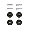 Die Verstärkung soll vor Verformungen schützen, die durch das Einsinken der Hülsen in die Wand unter dem Einfluss des Türgewichts entstehen. Wir bieten Verstärkung in Form von Metallplatten mit einer Dicke von 0,2 cm, einem Durchmesser von 6 cm und einer schwarzen Farbe, deren Anzahl an die Anzahl der Löcher in der Führung angepasst ist und die als Unterlegscheiben für die Hülsen dienen.