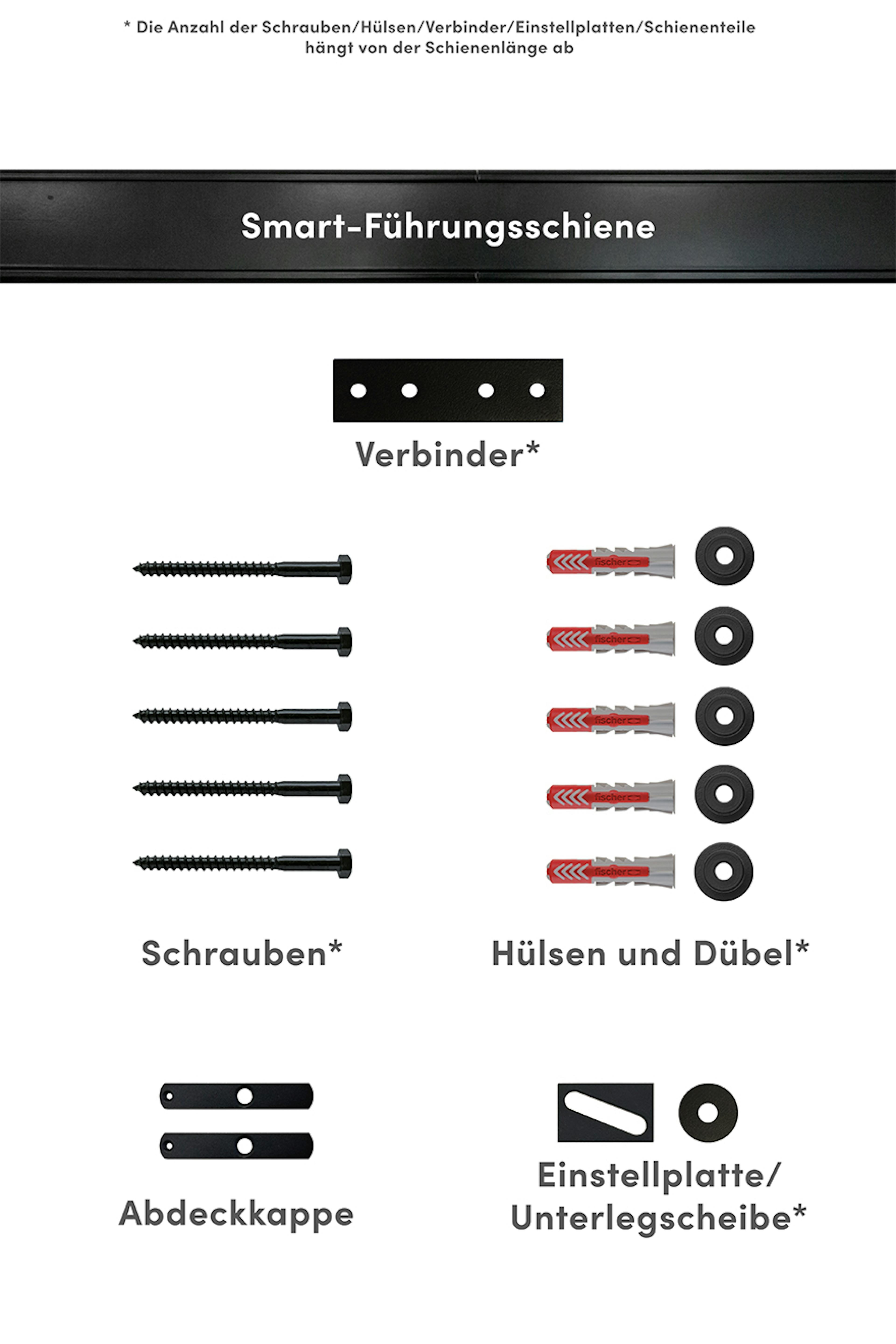 Alle unsere Smart-Schiebetürsysteme enthalten die Smart-Führungsschiene im Set.