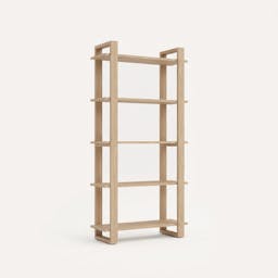 Dieses Modell zeichnet sich durch seine einzigartige Leiterkonstruktion aus. Solide Regalböden aus Massivholz, die in zwei Eichenrahmen eingefasst sind, verleihen ihm einen architektonischen Charakter und sorgen für volle Stabilität. Das Regal ist vollständig aus massiver Eiche gefertigt, was es extrem langlebig und widerstandsfähig macht. Die natürliche Maserung und die tiefe Farbe des Holzes machen jedes Exemplar zu einem Unikat und verleihen dem Innenraum eine edle Note.