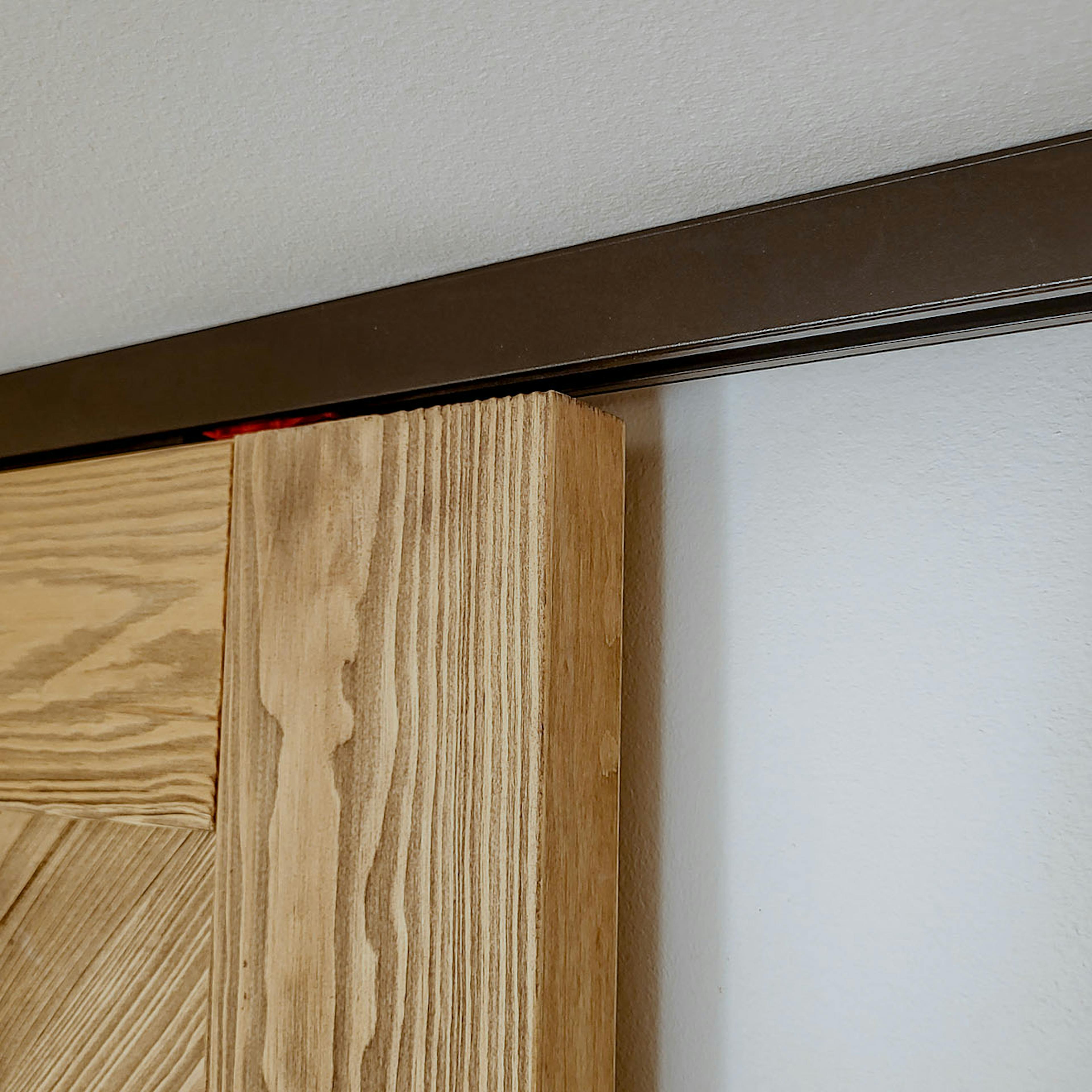 Minimalistisches Design und unsichtbare Schrauben - das schmale Profil der Führungsschiene wird direkt an der Decke oder Wand montiert, und alle Verbindungen, Befestigungselemente sowie Laufrollen bleiben maximal verborgen.