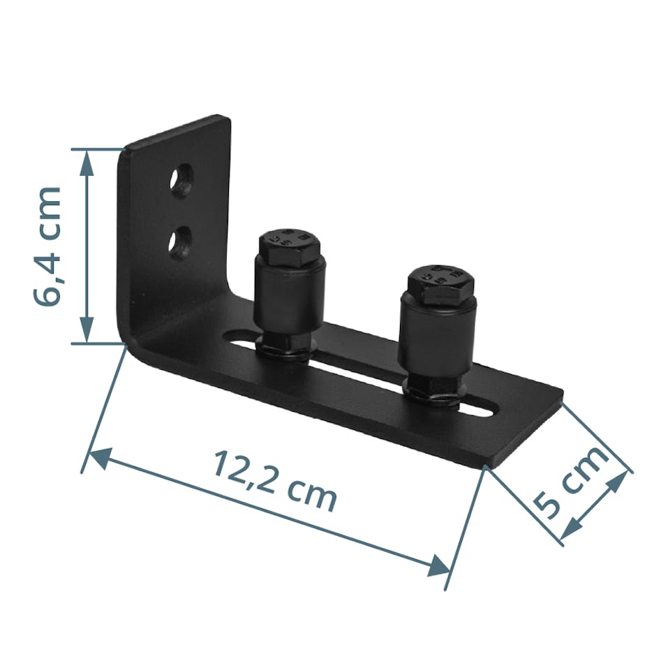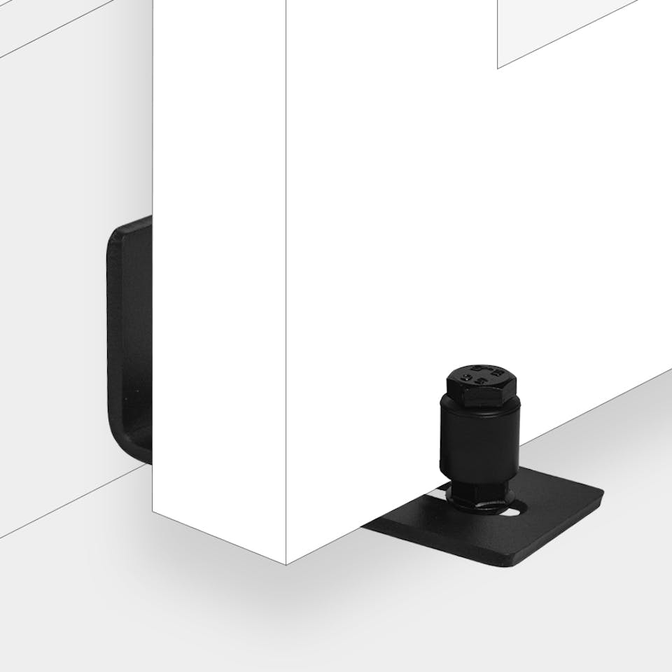 Diese Bodenführung wird mit Schrauben direkt an der Wand befestigt. Ideal, wenn die Bodenmontage mit einer T- oder U-Bodenführung ist unerwünscht oder nicht zu empfehlen ist. Dies ist der Fall, wenn eine Fußbodenheizung installiert ist oder die Tür zu hoch über dem Boden platziert wurde.