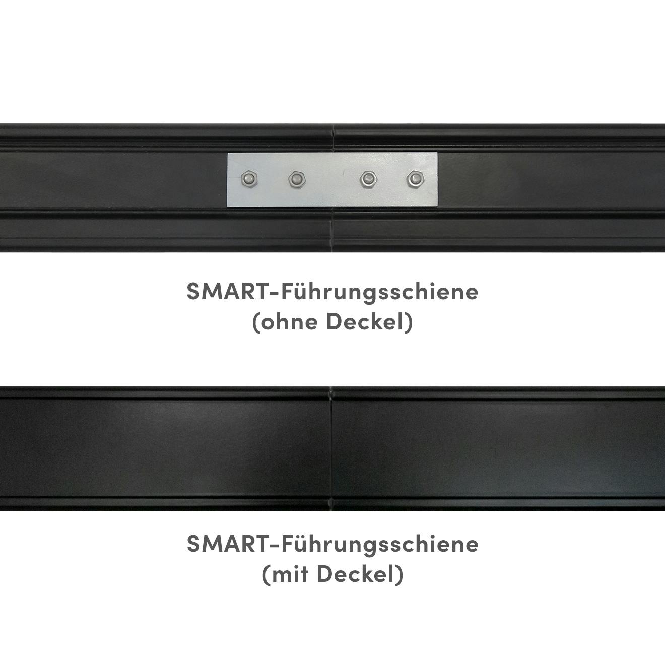 Der Verbinder sorgt für ein reibungsloses Gleiten der Rollen entlang der Führungsschiene. Es wird innerhalb der Smart-Führungsschiene unter der Abdeckung montiert, sodass es vollständig unsichtbar bleibt.